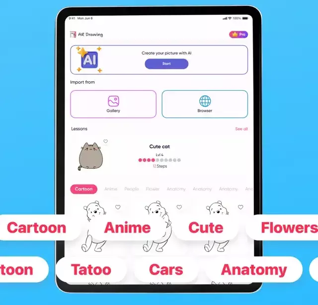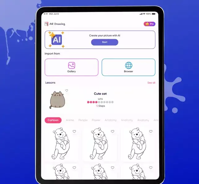 Whether you’re learning from scratch or leveling up your skills, ArtEasy gives you everything you need — templates, lessons, and the power of augmented reality right through your camera.